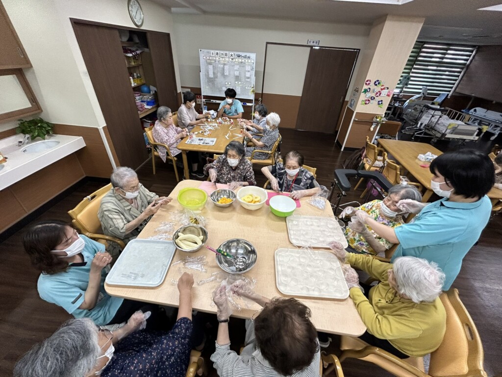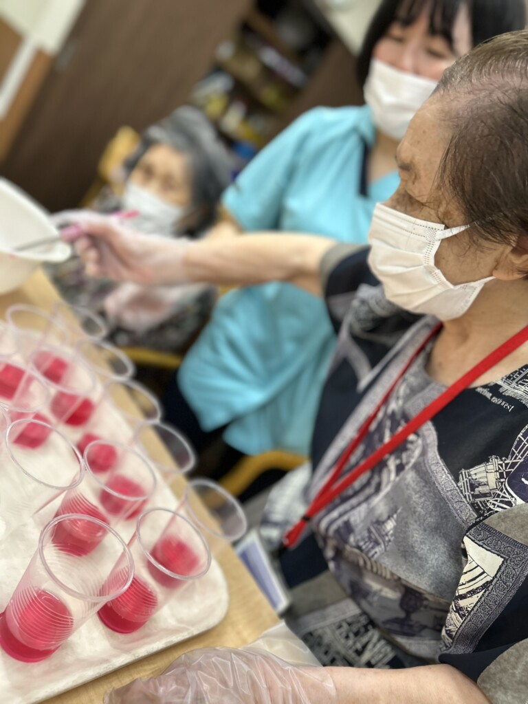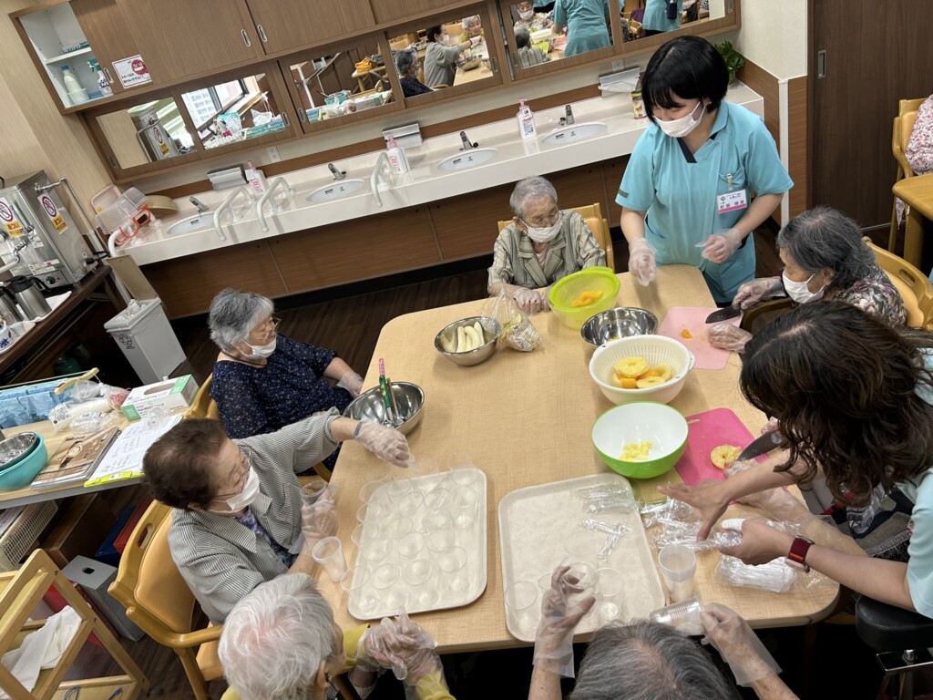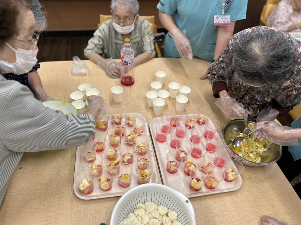 皆さん手際よくフルーツと白玉をコップに入れていきます!(^^)!