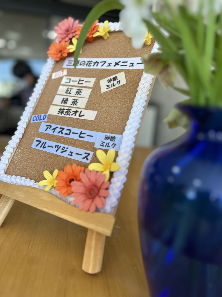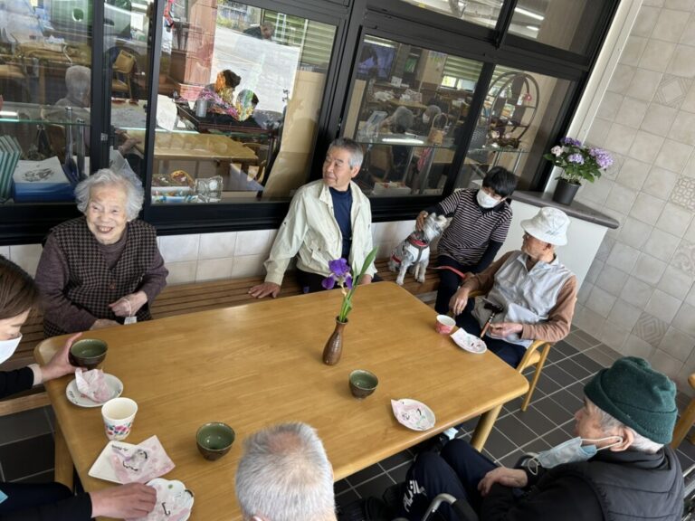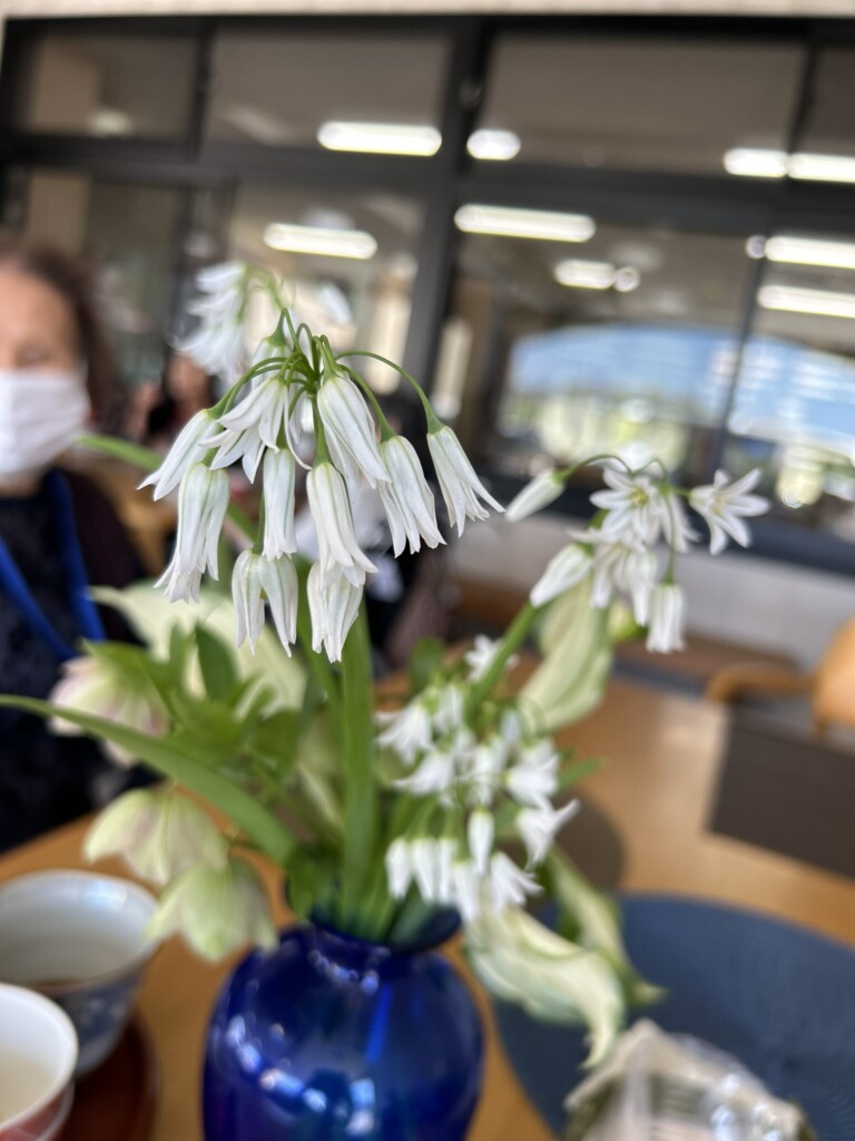 利用者さんの自宅で育てたお花を頂いたので、テーブルに飾りました♪