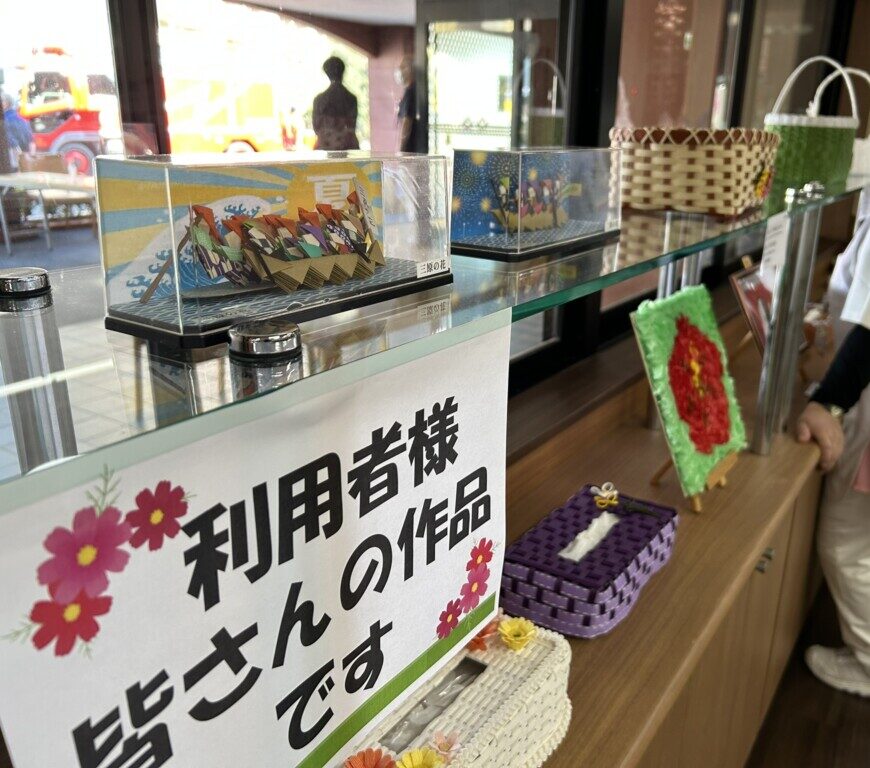 来所の皆様には利用者様達と一緒に作成した手作りの箸置きやブレスレットをプレゼント♪