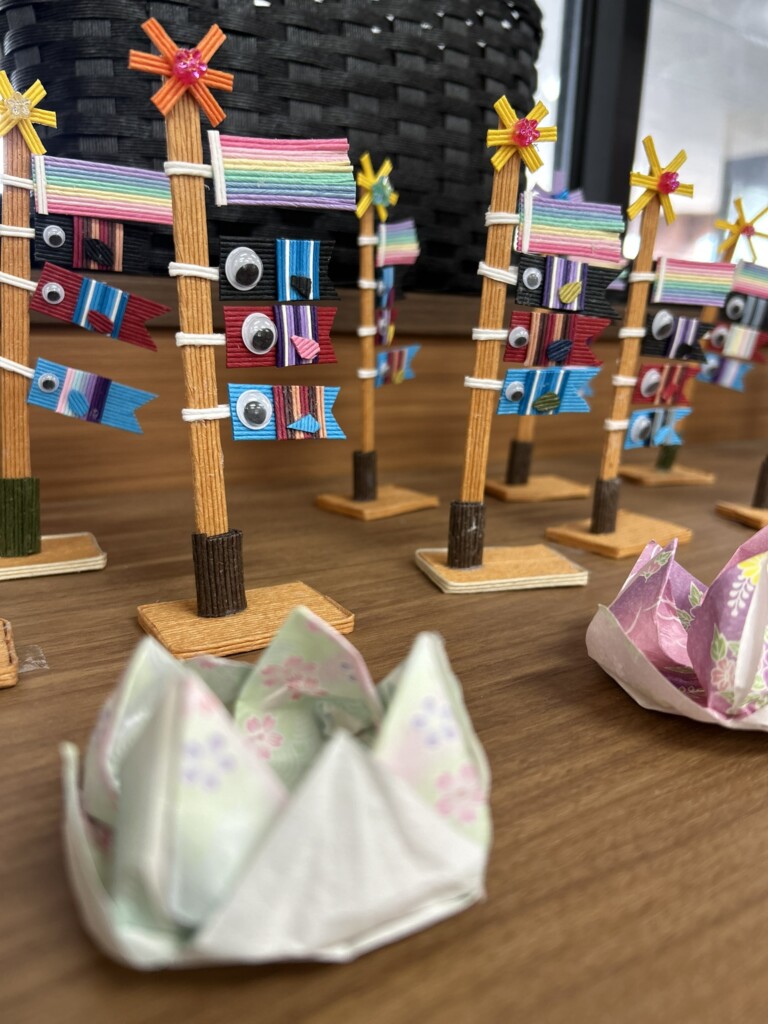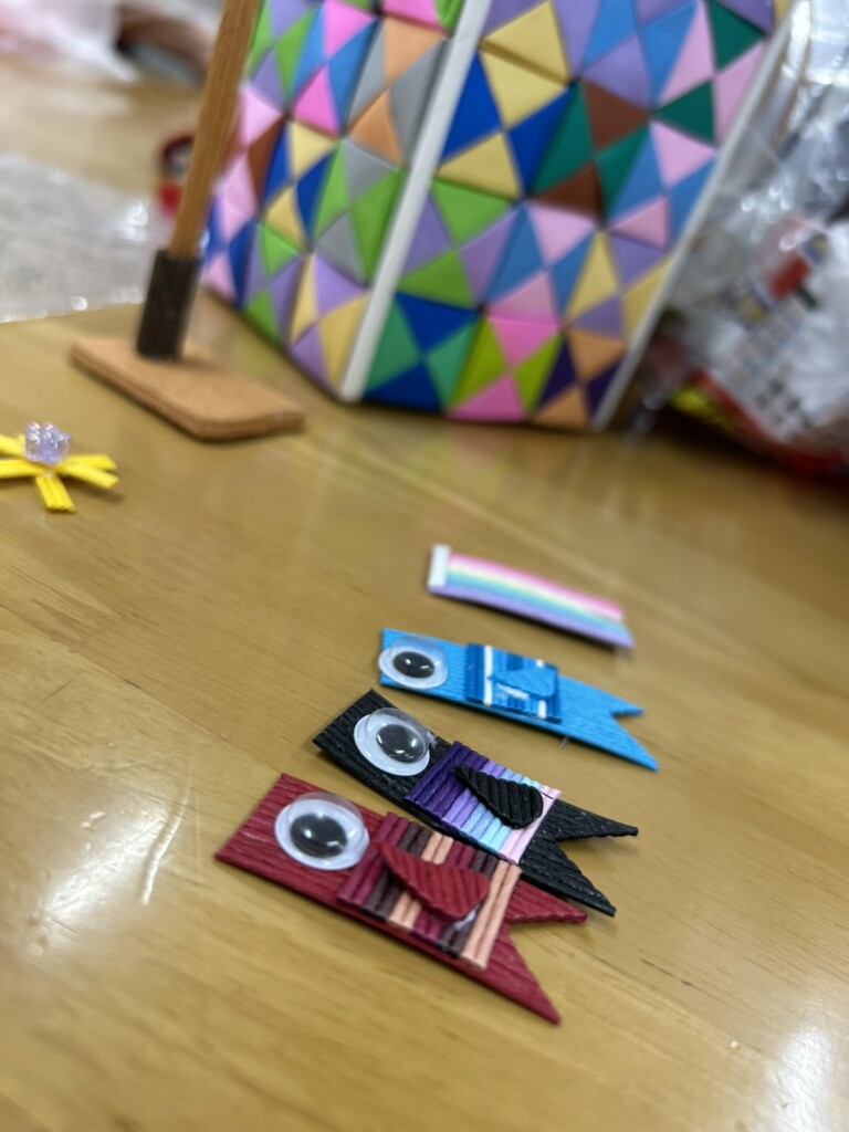 皆さんがそれぞれ作った鯉のぼりは暫く飾っておきましょう♪